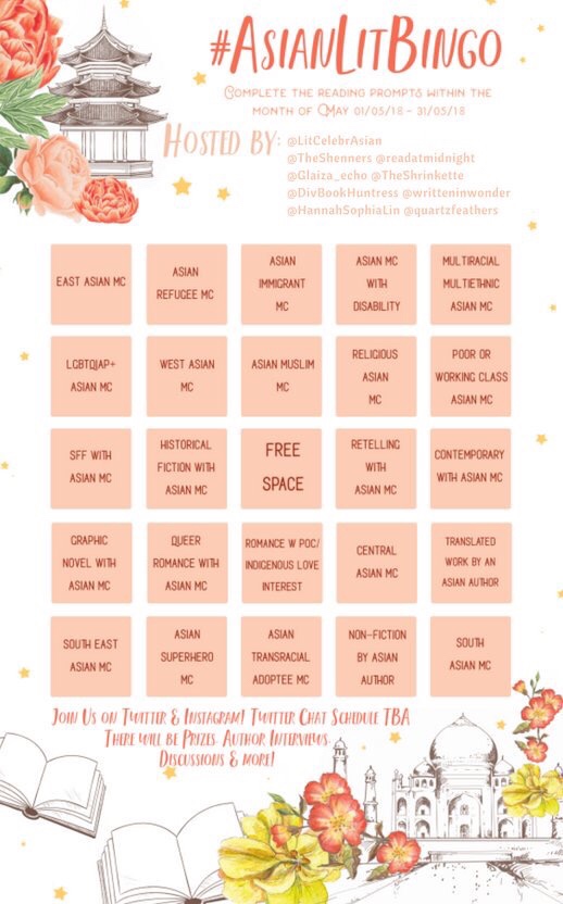 The challenge is in honor of Asian American Heritage Month. So, we’re looking for books by Asian authors with Asian main characters. The link above takes you to the main page if you have anymore questions